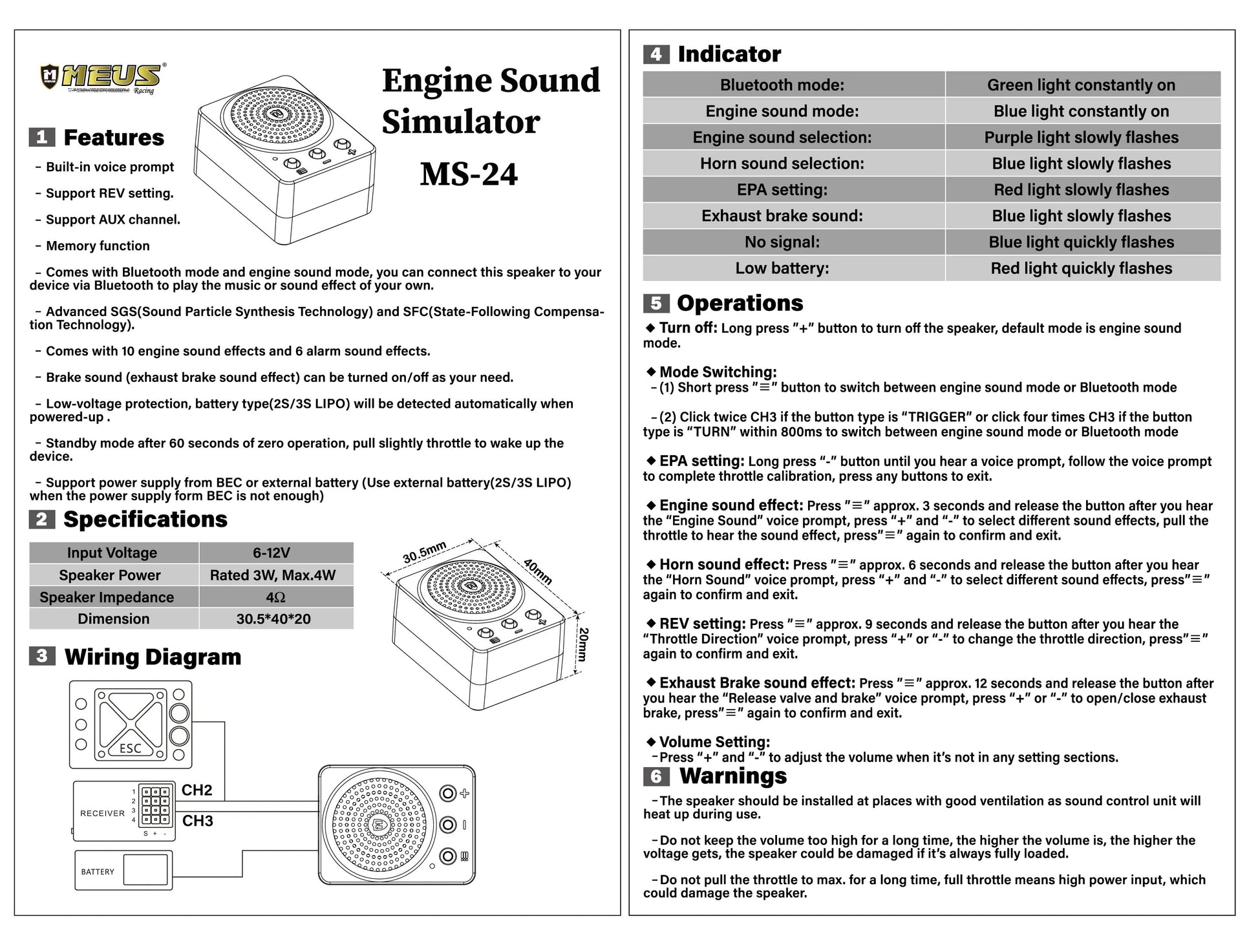エンジン サウンド シュミレーター MS-24 MEUS 1/18 TRX4M 1/24 SCX24 FMS