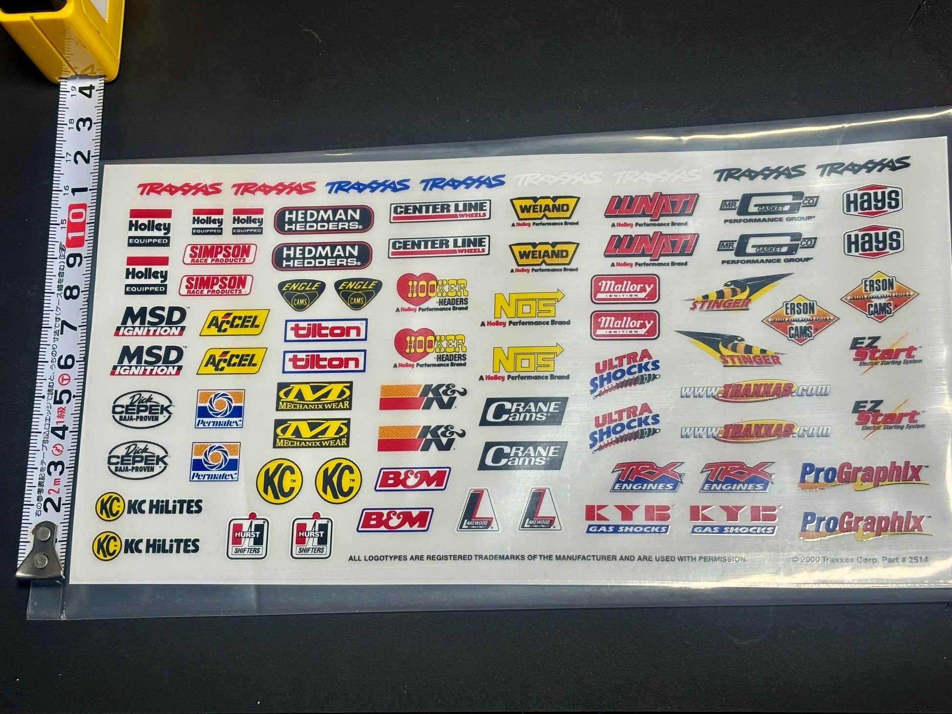 デカールシートには、NOS、K&N、Mechanix Wear、Holley、Hookerヘッダーなど、